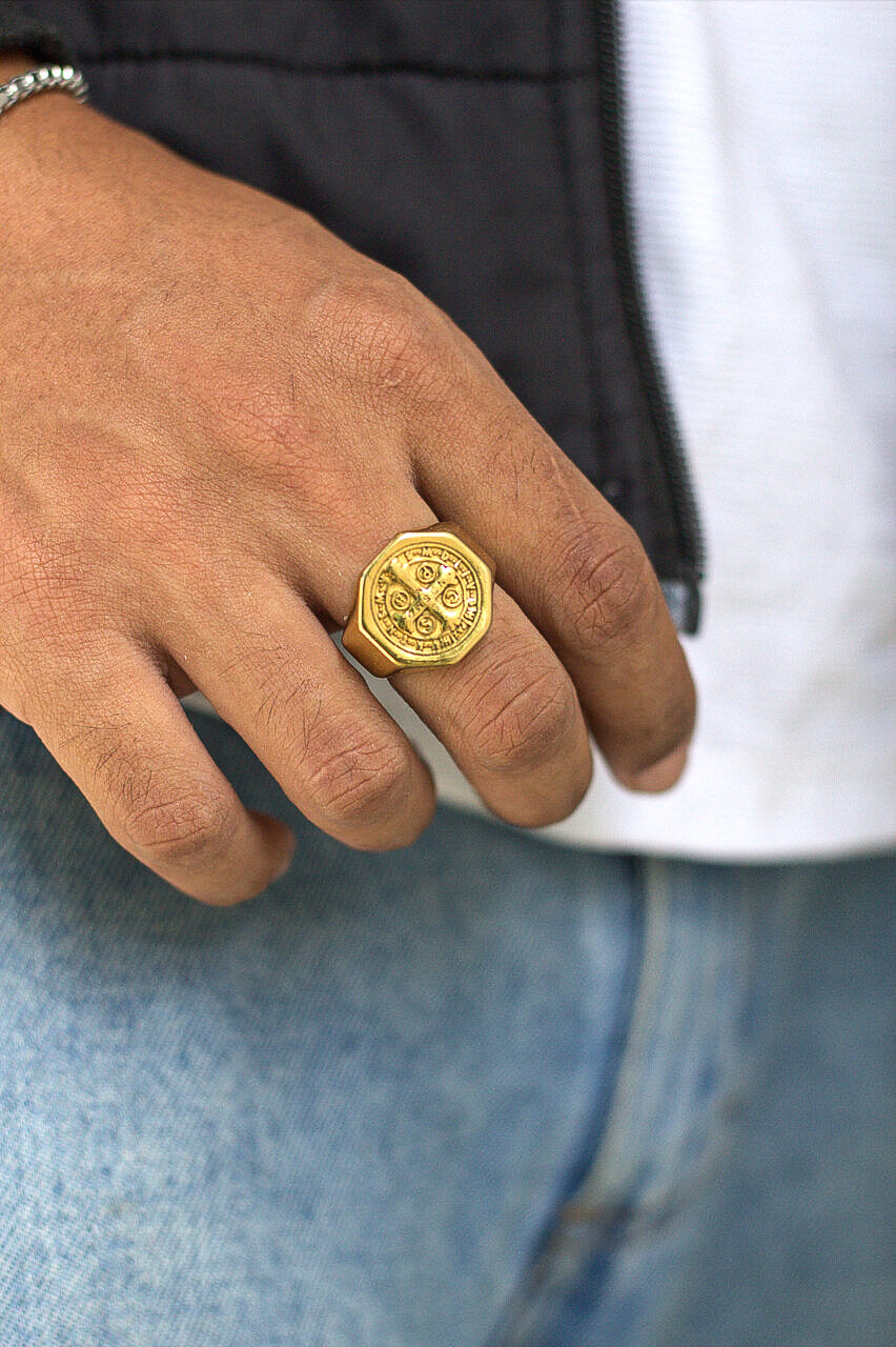 Anel Masculino Cruz Sagrada de São Bento Dourado